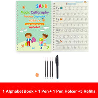 Copybook set with multiple practice pages plus one magic pen included.